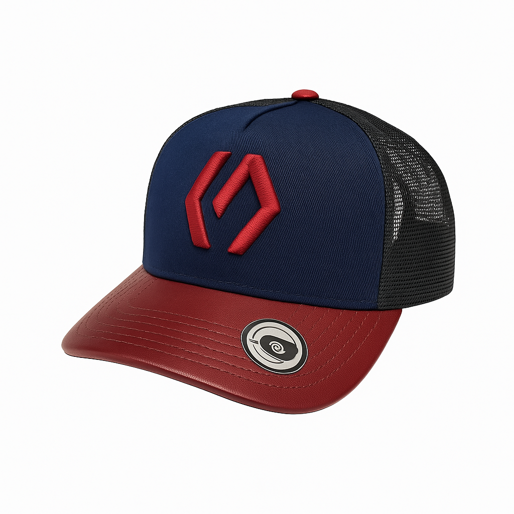 BONÉ AZUL/MARRON COURO